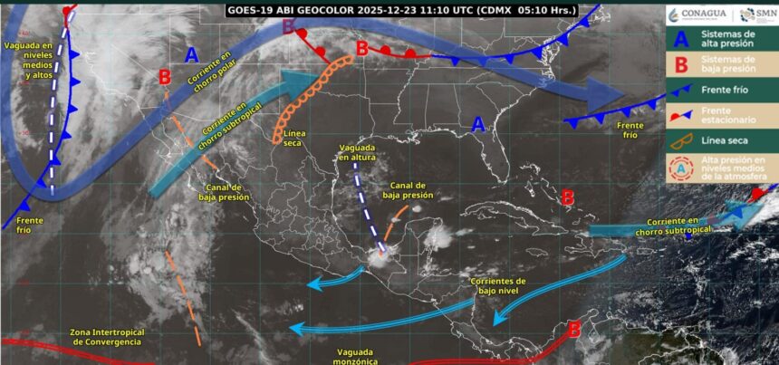 Finalmente, continuará el tiempo estable y sin lluvia en estados del norte y occidente del territorio nacional; así como ambiente frío a muy frío durante la noche y madrugada sobre entidades de la Mesa del Norte y la Mesa Central.