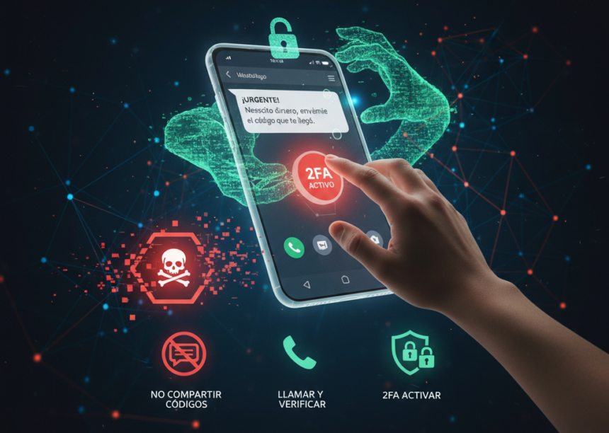 - El Secuestro de WhatsApp (o “Fraude del Código”): El delincuente llama o envía un mensaje haciéndose pasar por un servicio técnico, un amigo o una empresa, pidiendo que se le reenvíe un “código de verificación” (que en realidad es el código de verificación de WhatsApp de la víctima). Una vez que lo tiene, toma control de la cuenta.