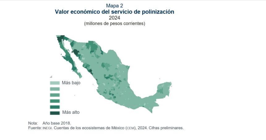El documento advierte que esta función esencial para la producción agrícola muestra un deterioro significativo, al ubicarse la entidad en los rangos más bajos del país en aportación ecosistémica vinculada a la polinización.