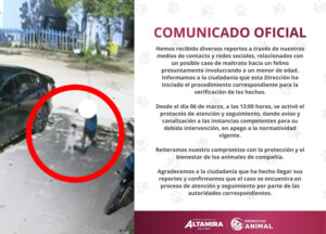 Altamira activa protocolo tras reportes de presunto maltrato animal vinculado a un menor