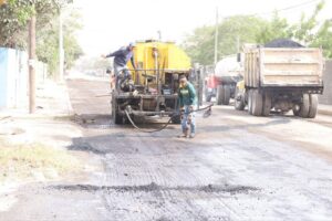 Cd. Victoria, Tamps., 17 de enero de 2024. – El gobierno de Victoria, a través de la Secretaría de Obras Públicas, aceleró los trabajos de rehabilitación de pavimentos para restaurar vialidades en colonias con recarpeteo de superficie de rodamiento dañada y el programa de bacheo permanente.