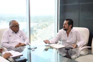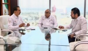 Ciudad Victoria, Tamaulipas.- Con el objetivo de fortalecer la comercialización de la producción ostrícola proveniente de granjas acuícolas en operación en los municipios de Matamoros, San Fernando, Soto la Marina y Aldama, el secretario de Desarrollo Rural, Pesca y Acuacultura, Antonio Varela Flores, y el subsecretario de Pesca y Acuacultura, Jorge de Jesús Montagner Mendoza, sostuvieron una reunión de trabajo con el presidente de la CANIRAC Victoria, Jesús Arnoldo Gómez González.