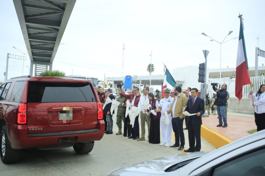 módulo de Control de Importación e Internación Temporal de Vehículos (CIITEV) del Puente Internacional Juárez-Lincoln, Américo Villarreal aseguró que los miles de paisanos que llegan a través de esta frontera tamaulipeca van a encontrar autoridades diligentes, honestas y dispuestas, que se han coordinado entre los tres órdenes de gobierno para acompañar su retorno brindando seguridad, toda clase de