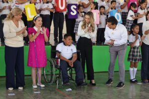 “Gracias señor presidente municipal y señora Lucy por construir ambientes inclusivos en un marco de igualdad y equidad, reciban el cariño de toda la escuela”, expresó la alumna Alejandra Lizbeth a nombre de los 250