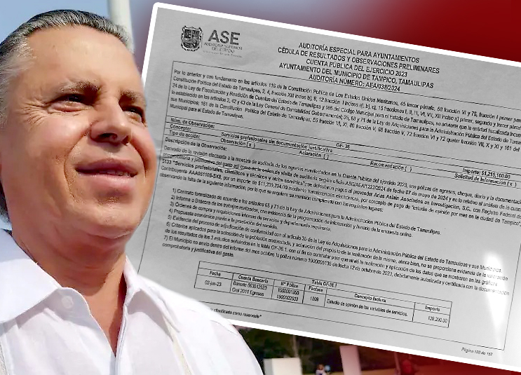 Tampico, Tamps.- Una observación preliminar de la Auditoría Superior del Estado (ASE), rubricada por la C.P. Susana Alicia Ariza Ávalos, correspondiente a la Auditoría Especial para los Ayuntamientos y remitida en el oficio ASE/AEA/2620/2024, pone bajo la lupa el manejo de recursos públicos durante la administración municipal encabezada por Jesús “Chucho” Nader (2021-2024) en el ejercicio fiscal 2023, al documentar pagos por 11 millones 239 mil 704 pesos a la firma Arias Asalian Asociados en Investigación, S.C., supuestamente destinados a estudios de opinión y posicionamiento en encuestas, sin que exista evidencia documental que demuestre la realización efectiva de dichos servicios.