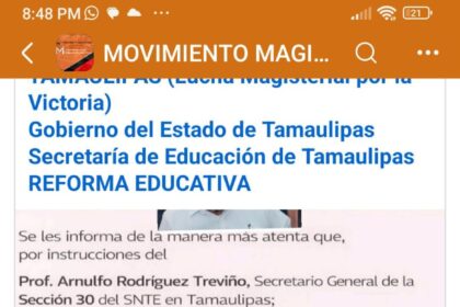 Por José Gregorio Aguilar El Movimiento Democrático Magisterial de Tamaulipas acusó al…