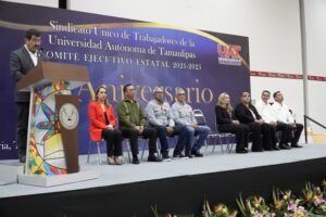 En su mensaje, destacó que, a más de cinco décadas, esta organización sindical ha sido parte esencial del crecimiento, la estabilidad y la fortaleza de la Universidad, subrayando que este encuentro no solo es una celebración, sino un reconocimiento al esfuerzo constante que hace posible que la UAT siga siendo un orgullo para todo el estado de Tamaulipas.