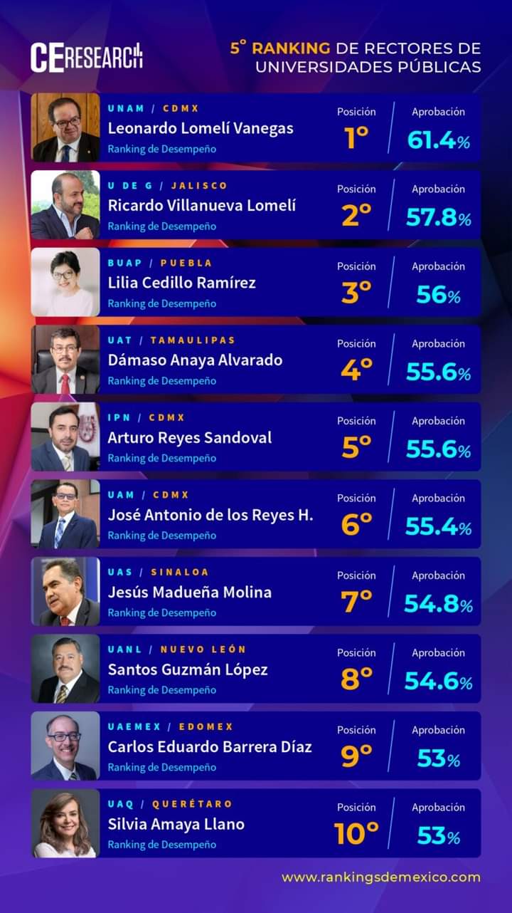en el cuarto lugar en el ranking nacional de mejores rectores de