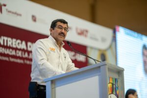 Agradeció al gobernador, AMÉRICO VILLARREAL ANAYA, por el apoyo a los universitarios, y le expresó su reconocimiento por el impulso a la transformación educativa en Tamaulipas.