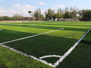 El secretario Pedro Cepeda Anaya mencionó que en el citado espacio público construyen una cancha de fútbol de pasto sintético con las medidas reglamentarias para modalidad de Fut-7, baños y gradas.