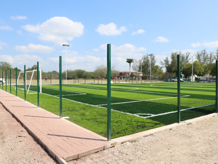 “Estamos trabajando en la instalación del pasto sintético, además de la colocación de luminarias para el campo y el espacio multideportivo, así como el armado de la estructura para las gradas”, refirió el titular de la dependencia estatal.