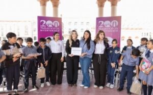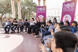 En esta ocasión, la presidenta del DIF Matamoros, Anita de Granados, acompañó a estudiantes de la Escuela Primaria Josefina Menchaca durante una visita a la Plaza Principal, actividad que se realiza en el marco de la conmemoración del bicentenario y que permitió reforzar el valor de los espacios emblemáticos de la ciudad.
