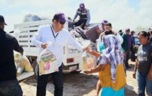 Matamoros, Tamaulipas.- Las y los Mensajeros de Paz del Sistema DIF Tamaulipas, que preside la doctora María de Villar real, regresaron al ejido Higuerillas para cumplir los compromisos asumidos y entregar más de dos mil apoyos a familias de la comunidad, así como de las islas aledañas.