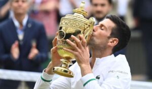 Ciudad de México.- Novak Djokovic igualó a sus rivales Roger Federer y Rafael Nadal al adjudicarse el domingo su vigésimo título de Grand Slam al derrotar el domingo 6-7 (4), 6-4, 6-4, 6-3 a Matteo Berrettini en la final de Wimbledon.