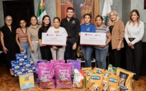 H. Matamoros, Tamaulipas.- Con el objetivo de apoyar a quienes dedican su tiempo y esfuerzo al cuidado y protección de los animales, el Gobierno Municipal de Matamoros, que encabeza el alcalde Beto Granados, realizó la entrega simbólica de alimento para mascotas y productos de limpieza a distintas asociaciones y refugios de la ciudad.