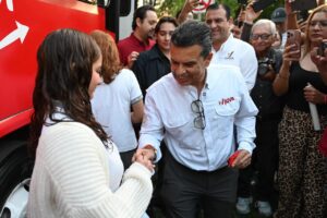 Entrega Lalo Gattás tarjetas de transporte escolar gratuito.