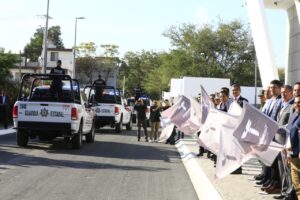 Ciudad Victoria, Tamaulipas, 7 de febrero de 2023.- La Guardia Estatal de Tamaulipas puso en operación 51 nuevas patrullas, para reforzar de manera inmediata, el estado de fuerza y presencia policiaca en toda la entidad, las cuales fueron entregadas esta mañana por el gobernador Américo Villarreal Anaya, en las instalaciones del C-3.Acompañado por el secretario de Seguridad Pública, Sergio Hernando Chávez García y por los integrantes de la Mesa para la Construcción de la Paz en Tamaulipas, el gobernador Américo Villarreal dio el banderazo, a este nuevo lote de unidades que se distribuirán en todo el estado y que se suman, a las que se entregaron anteriormente en Reynosa y en esta misma capital.“Hemos estado muy atentos y hemos estado pasando visita todos los días al estado que guarda la seguridad de nuestra entidad y a través de los representantes del Ejército, la Marina, Guardia Nacional, Guardia Estatal y las fiscalías, para que todos en conjunto podamos estar trabajando para darle seguridad a las y los tamaulipecos y brindarles también oportunidades para reconstruir la paz, en esta nueva forma de hacer política, de tener una sociedad integral y colaborativa para reconstruir lo que queremos tener un estado en paz, trabajando, próspero y con bienestar”, dijo el gobernador.Asimismo, se dirigió a los elementos de la Guardia Estatal a quienes les reiteró su compromiso para estar atento a su situación laboral y encabezar las gestiones necesarias para que cuenten con mejor equipamiento y unidades para cumplir su encomienda y seguir logrando buenos resultados como hasta la fecha.“Cuenten  elementos de la Guardia Estatal que estaremos muy atentos de cuidar su situación personal, su situación laboral y que cada vez tengan mejor equipo para cumplir con esta alta encomienda que nos están dando los tamaulipecos”, expresó.Por su parte, el secretario de Seguridad, Sergio Chávez García agradeció al gobernador Américo Villarreal el esfuerzo e impulso que ha dado a las tareas de seguridad desde el inicio de su administración.Aseguró que  estos vehículos servirán para reforzar las acciones y los resultados que la Guardia Estatal está dando a los tamaulipecos en materia de seguridad.Acompañaron al gobernador, el comandante de la 48a Zona Militar, General Elpidio Canales Roas; el secretario General de Gobierno, Héctor Joel Villegas González; el Fiscal General de Justicia, Irving Barrios Mojica; el delegado de Programas Federales para el Desarrollo, Luis Lauro Reyes Rodríguez; el Jefe de la Oficina del Gobernador, Ricardo Guerrero Morales, y los integrantes de la Mesa de Coordinación Estatal para la Construcción de la Paz.