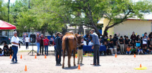 Cd. Victoria, Tamaulipas.- Dentro del marco del mes de la Educación Especial, en los patios de la escuela primaria Ignacio Ramírez Hernández, del ejido Guadalupe Victoria, este martes por la mañana se llevó a efecto interesante Exhibición de Equinoterapia a cargo del experto profesor Marco Antonio Mendoza Medina, apoyado por su esposa Marcela Colchado Ramos e Itzayara López Luna