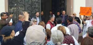 Ciudad Victoria.-Empleados eventuales de la Secretaría de Salud protestaron frente al palacio de gobierno de Tamaulipas debido a que no les han entregado 200 plazas laborales que estaba disponibles,
