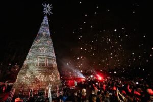 Familias disfrutan con el alcalde Beto Granados el encendido del pino navideño de Coca-Cola