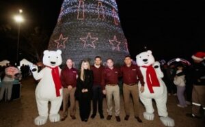 H. Matamoros, Tamaulipas.- El pino navideño de Coca-Cola brilló en el Parque Olímpico durante su encendido oficial, un evento que reunió a decenas de familias que se dieron cita para disfrutar de esta tradición que marca el inicio de la temporada decembrina.