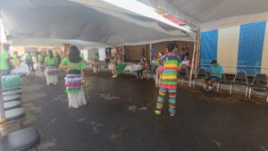 Desde temprana hora, un grupo de jóvenes realizó danzas tradicionales frente a los locales, mientras los vendedores y visitantes se unían en aplausos y plegarias.