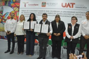 El Sindicato Unido de Trabajadores al Servicio de los Poderes, del Estado de Tamaulipas (SUTSPET) y la Universidad Autónoma de Tamaulipas (UAT) firmaron un convenio de colaboración para ofrecer beneficios educativos a los trabajadores y sus hijos.