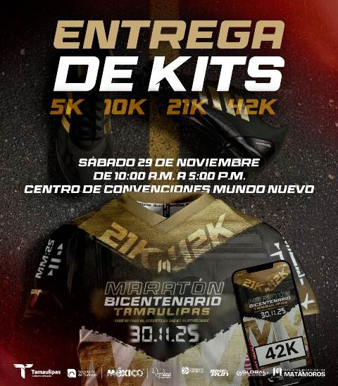 H. Matamoros, Tamaulipas.- El gobierno de Beto Granados informó que este sábado 29 de noviembre se llevará a cabo la entrega de los kits de participación para las distancias 5K, 10K, 21K y 42K del Maratón de Matamoros, uno de los eventos deportivos más esperados del año. Las autoridades hacen un llamado a las y los corredores para acudir puntualmente y completar este paso indispensable previo a la competencia.
