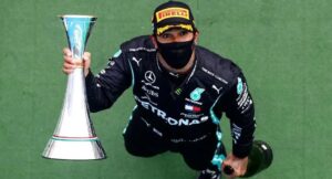 El piloto británico estuvo acompañado en el podio por el holandés Max Verstappen, el finlandés Valtteri Bottas