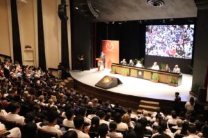 Entre aplausos de estudiantes y profesores, el rector convocó a la comunidad universitaria a continuar fortaleciendo la formación integral de los estudiantes, enfatizando que la calidad educativa debe reflejarse en beneficios concretos para la sociedad.