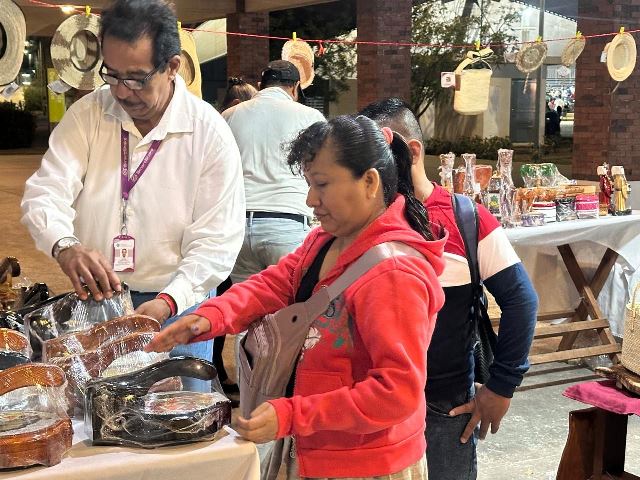 En el espacio, las y los visitantes pueden encontrar una amplia variedad de productos elaborados a mano con materiales como madera, palma y cuero, reflejo del trabajo y aprendizaje