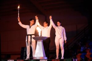 Dámaso Anaya entregó material deportivo a los equipos y encabezó el encendido del pebetero con el Fuego Universitario,