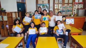 Al final de la presentación, los niños de primaria y jardín de niños del Colegio, se inspiraron para plasmar en coloridos dibujos a los principales personajes de “El Maravilloso Señor Moon”.