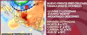 CIUDAD VICTORIA. – Protección Civil Tamaulipas informó que un nuevo frente frío cruzaría Tamaulipas durante el domingo.
