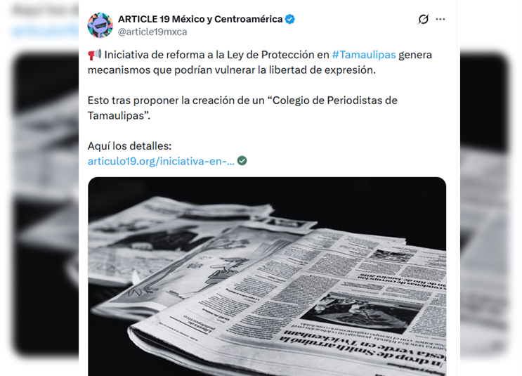 Fuente: https://articulo19.org/iniciativa-en-tamaulipas-un-riesgo-de-control-estatal-y-tribunales-eticos-contra-la-libertad-de-expresion/