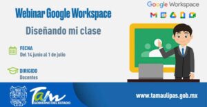 Cd. VIctoria, Tam.- La Secretaría de Educación de Tamaulipas ofrecerá una serie de sesiones como parte del Webinar Google Workspace for Education: La forma más fácil de aprender, DISEÑANDO MI CLASE que se desarrollarán de hoy lunes 14 de junio al jueves 1º de julio de 2021.