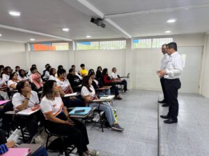 Después, se trasladó al Espacio Cultural para interactuar con estudiantes y docentes en un entorno participativo, conociendo de cerca el ambiente de aprendizaje que se vive en la institución académica, para concluir, más adelante, con la develación de una placa de la Sala de Maestros y una reunión con el personal administrativo.