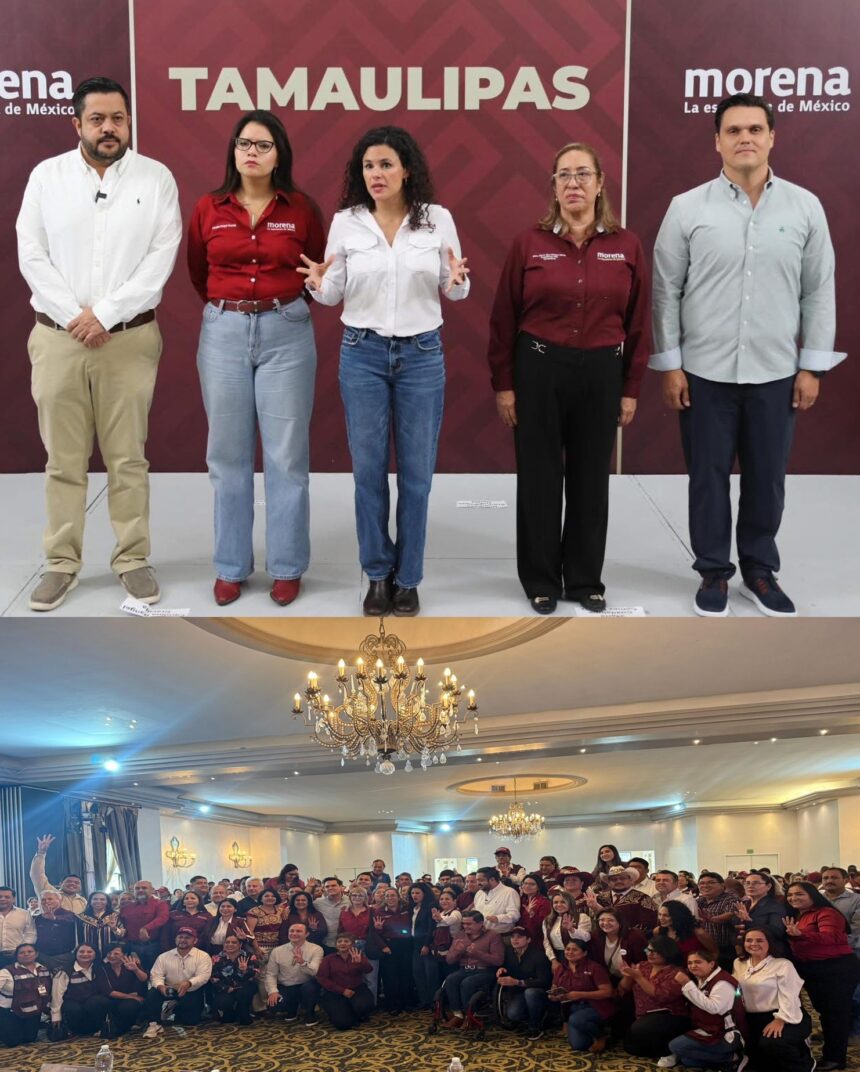 de Morena, Carolina Rangel Gracida, Secretaria General del CEN y María Guadalupe Gómez Núñez, Presidenta del CEE de Tamaulipas.
