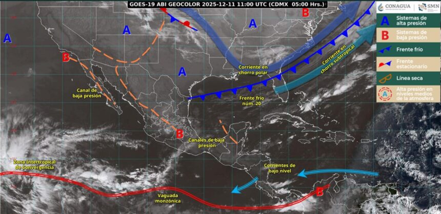 Finalmente, persistirá ambiente frío a muy frío al amanecer, en estados de la Mesa del Norte y Mesa Central, y gélido en sierras de Chihuahua y Durango.