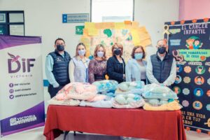 Cd. Victoria, Tamps., 29 de febrero del 2024. – Luego de implementar diferentes actividades con causa, el Voluntariado del DIF Victoria, que preside Lucy de Gattás, logró reunir recursos para elaborar más de 40 kits con regalos para niñas y niños con cáncer del área de oncología del Hospital Infantil de Tamaulipas.