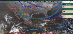 Finalmente, un frente frío se aproximará a la frontera norte de México, en el transcurso de la tarde-noche.