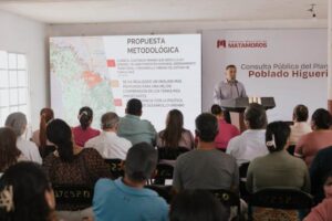 Poblado Higuerillas, Matamoros.- Con el objetivo de cimentar un crecimiento ordenado y sostenible que responda a las necesidades reales de las familias del sector pesquero, el alcalde Beto Granados encabezó la audiencia pública y consulta ciudadana para la Actualización del Plan Parcial de Desarrollo Urbano de Las Higuerillas.