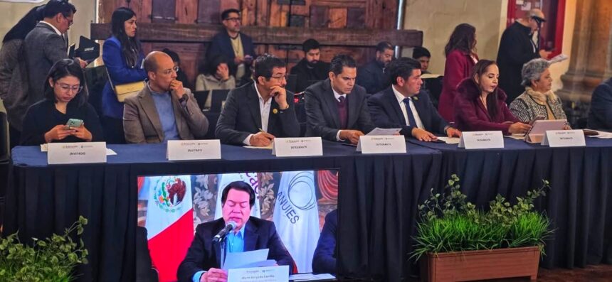 En el desarrollo de los trabajos realizados en el histórico edificio de la SEP, intervino también la titular de la Secretaría de Ciencia, Humanidades, Tecnología e Innovación (SECIHTI), Rosaura Ruiz Gutiérrez, con la presencia del secretario general ejecutivo de la Asociación Nacional de Universidades e Instituciones de Educación Superior (ANUIES), Luis González Placencia.