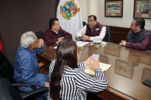 En reunión con los secretarios de Obras Públicas, Eusebio Alfaro Reyna, del Ayuntamiento, Hugo Reséndez Silva, y coordinador de Plan de Bacheo, Jorge Bello Méndez, encabezó la revisión de la propuesta de