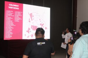 Detalló que al día 28 de proselitismo, ha visitado más de 20,770 familias para escuchar necesidades y peticiones, y con apoyo del candidato suplente Gerardo Illoldi y su amigo Jorge “Tico” García, a logrado llegar a otras 145 colonias y ejidos de la Capital del Estado.