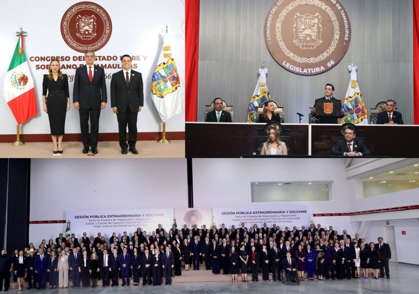 AL RENDIR protesta a los nuevos integrantes del Poder Judicial de Tamaulipas, democratizado, el presidente del Congreso Local “ponderó la transformación” que, superó vicios históricos y “reivindicó al pueblo como origen y destino del trabajo de las personas juzgadoras”.