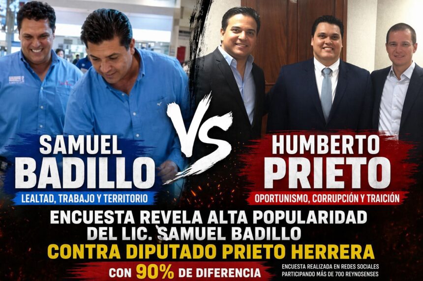 Más del 90% de los participantes prefirió al Lic. Samuel Badillo como posible candidato de Morena a la alcaldía de Reynosa, mientras que el respaldo para Prieto fue marginal, incluso por debajo de otros perfiles como Marco Gallegos.