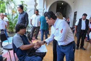 El alcalde Eduardo Gattás Báez, junto a su esposa Lucy de Gattás, visitó los módulos de contratación para agradecer a las empresas participantes la oportunidad de insercion laboral que ofrecen al ciudadano y el impulso a la economía de la Capital del Estado.