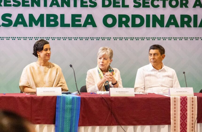 La reunión fue encabezada por la titular de la SEMARNAT, Alicia Bárcena Ibarra; el gobernador de Oaxaca, Salomón Jara Cruz; y el presidente de la Mesa Directiva de la ANAAE, Óscar Alberto Rébora Aguilera.