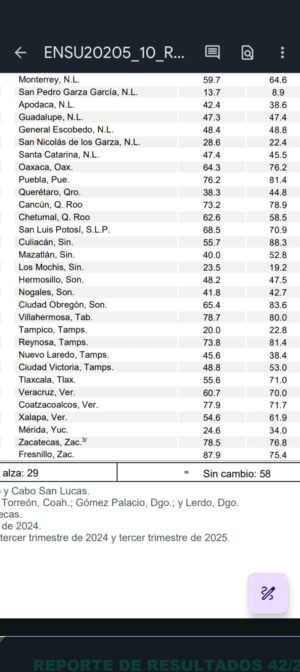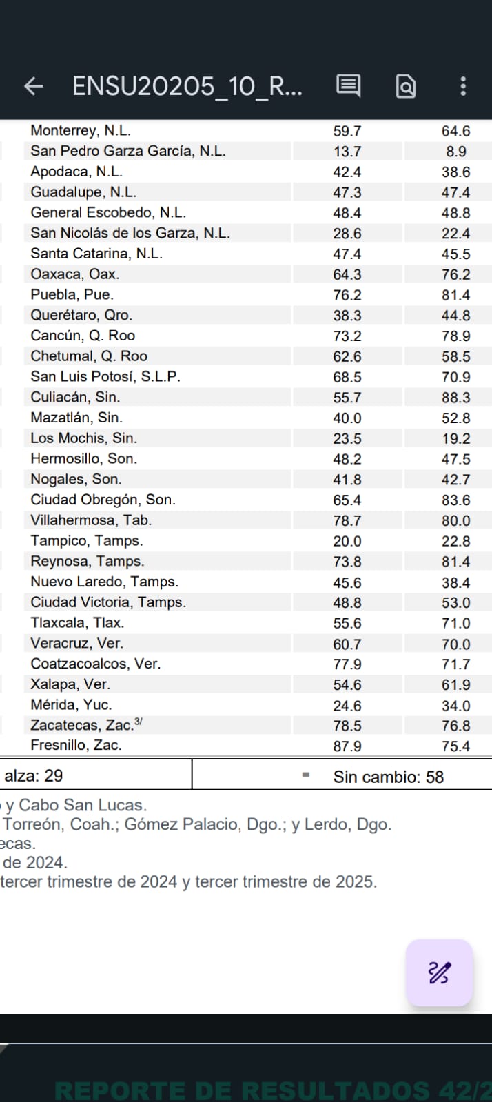 Esto representa una disminución estadísticamente significativa de 1.5 puntos porcentuales en relación con junio de 2025, cuando se reportó 25.4 %; y un aumento estadísticamente significativo de 3.9 puntos porcentuales en relación con septiembre de 2024, cuando fue de 20.0 %.